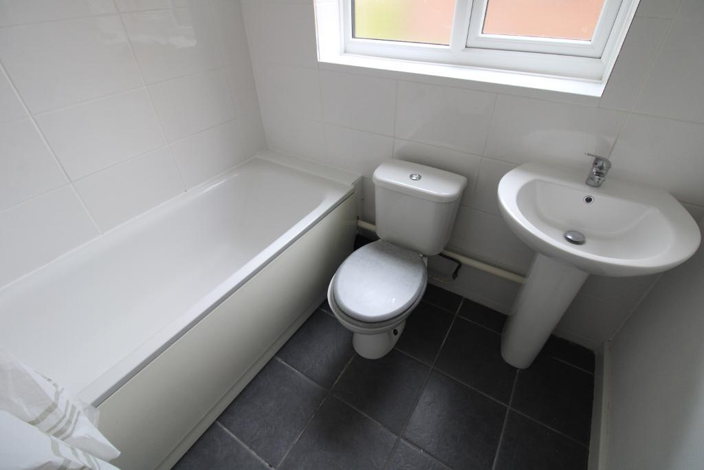 6' 6'' x 5' 10'' (2m x 1.8m) Ceramic tiled floor and radiator. Three piece bathroom suite to include a pedestal wash hand basin, low level W.C. and fully tiled walls and spalhbacks. Frosted double glazed window.