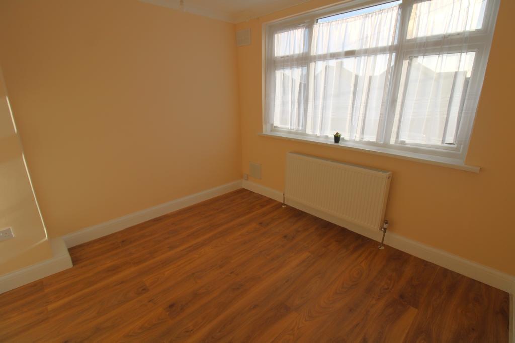Laminate flooring, radiator and rear aspect double glazed window.