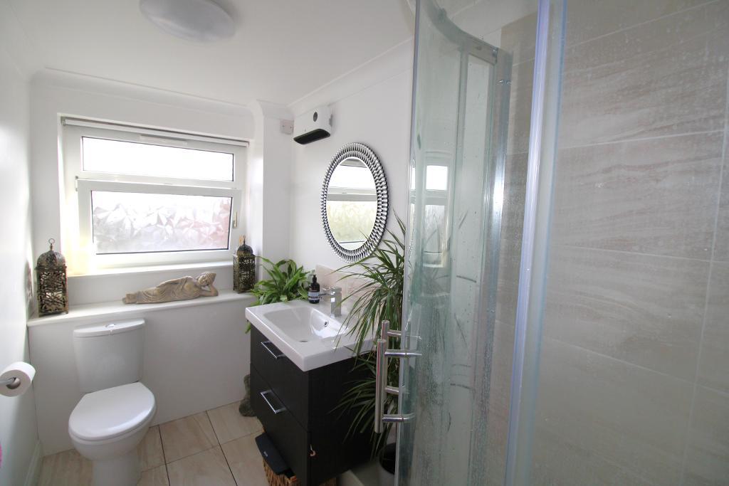 10' 5'' x 4' 11'' (3.2m x 1.5m) Tiled flooring Three-piece bathroom suite to include electric shower, hand basin on storage unit, low level W.C. and Frosted double glazed window.