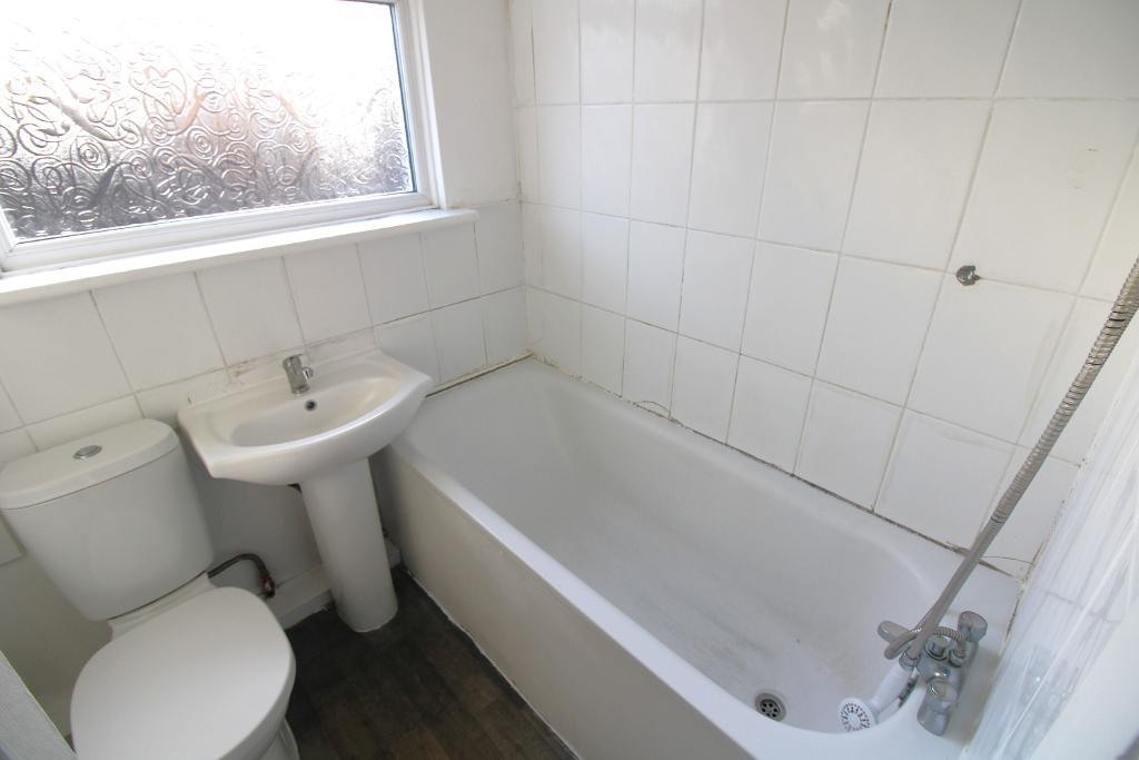 5' 10'' x 5' 6'' (1.8m x 1.7m) Vinyl flooring and radiator. Three-piece bathroom suite to include a panel enclosed bath with mixer tap, electric shower, pedestal hand basin, low level W.C. and part tiled walls and splashbacks. Frosted double glazed window.