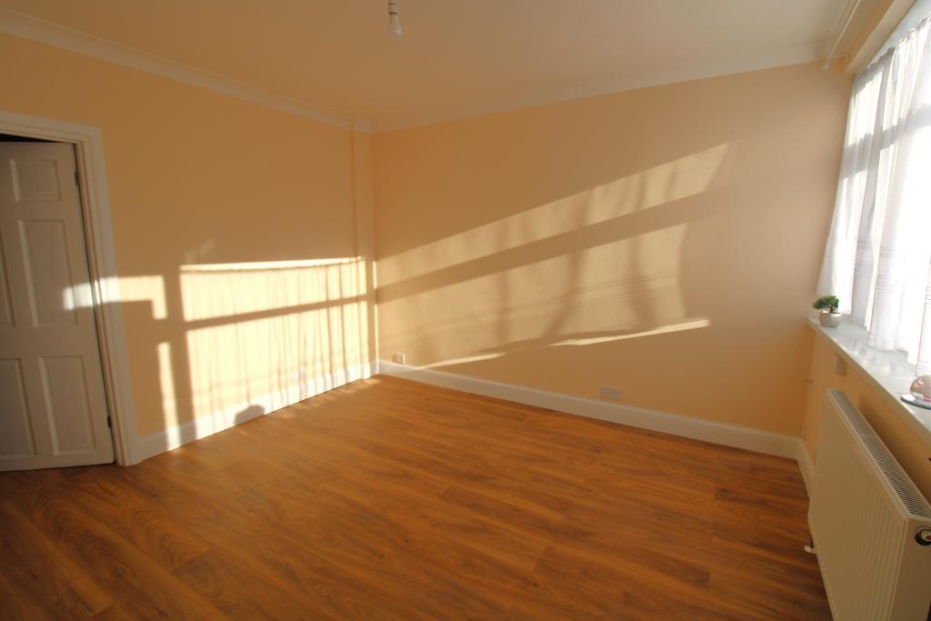 Laminate flooring, radiator and rear aspect double glazed window.